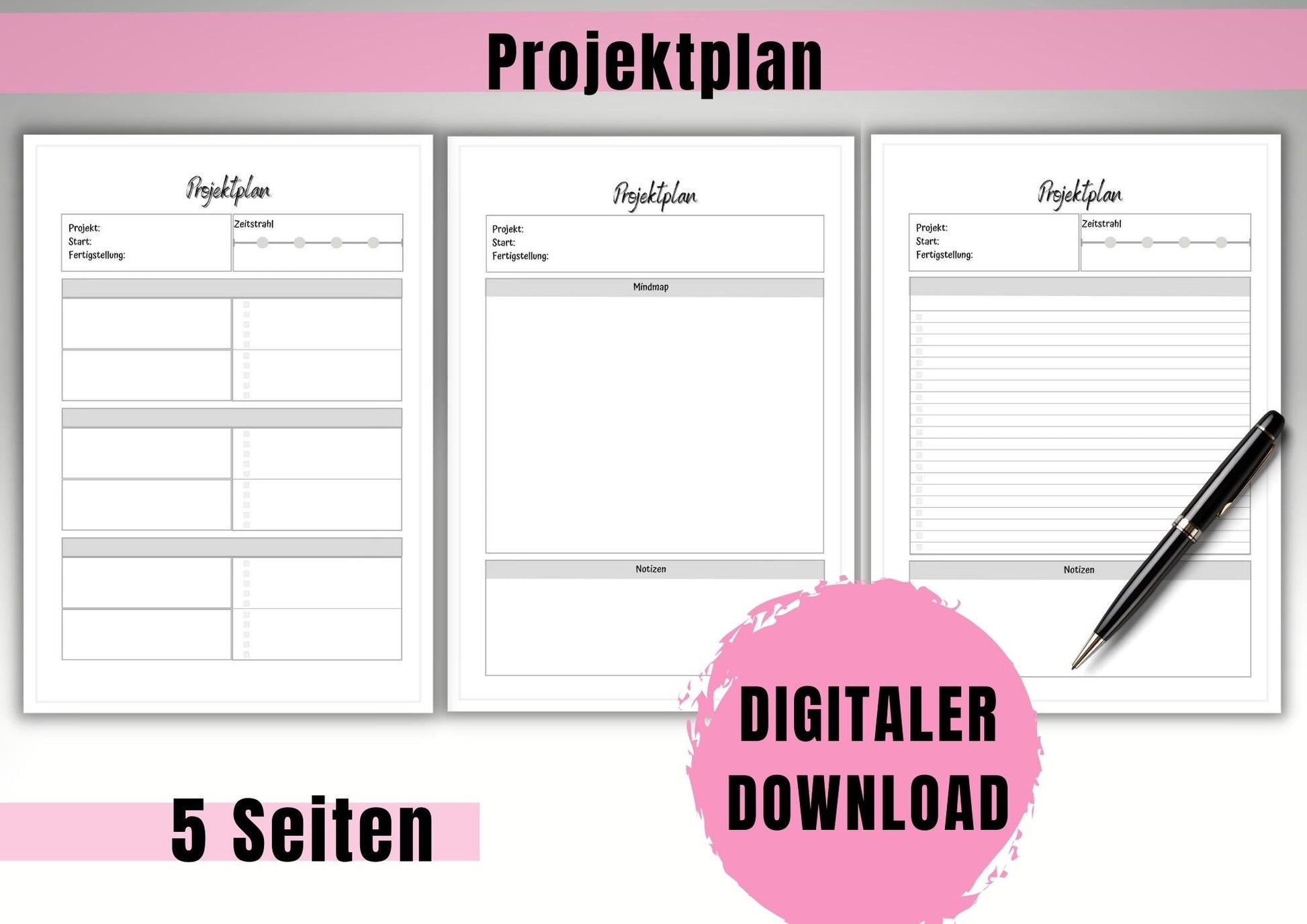 Priorisiere Aufgaben, sammel Ideen, Lege die Etappen zum Ziel auf deinem Zeitstahl fest, nutze die Kontollkästchen zum abhaken und nutze den Tagesplan für ein effektives Zeitmanagament. Dieser Projektplan hilft dir dabei deine Zeit optimal einzuteilen um dein Projektziel zu erreichen. Nutze den Projektplan fürs Studium, Business, Feste und überall wo du deine Zeit effektiv und übersichtlich einplanen kannst.